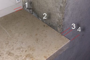 Im Fensterrahmen ist unten eine Nut. In diese wird die Fensterbank geschoben. Sie messen also unten die Nut am hinteren Anschlag [1]+ Mauerwerkdicke [2] + Verputzstärke [3](ca.1 cm) + 3 cm Standard-Überstand [4]. (Im Zweifel den Verputzer fragen, wie viel er aufträgt)